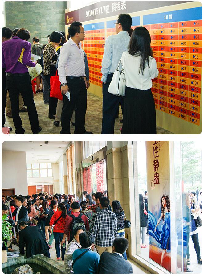 2013年5月1日,销售中心里可谓人声鼎沸,销售人员忙得不可开交。KY开元官网·旭景花园举办了首场针对广州客户的专场产品推介活动,现场激情四射,晌午开始陆续19台大巴缓缓到场,人头攒动,近千个同行销售人员带着他们的客户进入销售中心。现场销售人员有的在模型区细致讲解项目的优势及区域配套;有的在忙着为客户核算投资价值。最热爆的场面数在销控前大声呼喊“销售17幢1203房,销售15幢1104房……”听到叫喊声,现场再次沸腾,财务收取定金处,客户排长队交钱,更有甚者,销售员与销售员相互呼喊“是我的客户先选的这套房”,尽为争购同一套单位而面红耳赤。公寓与2房单位已抢购一空,首场销售认购近70套单位。这样的销售场面,在房地产逆市中再次呈现,证明市场的需求及产品的价值至关重要。