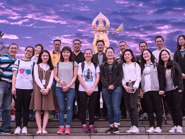 2018/3/7甘露遍洒佑民间3月17日,在公司领导的组织下,KY开元官网员工们远离城市的喧嚣,踏进广州市番禺莲花山,开启虔诚之旅,意在放松身心,激发各员工对工作和生活的热情。 40.88米高的望海观音金像霞披狮海,光泽南天。同事们虔诚许愿,希望观音甘露遍洒,佑我国昌,佑我司兴,佑我家安。